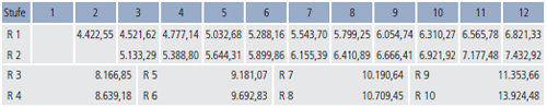 Grundgehaltssätze (Monatsbeträge in Euro)